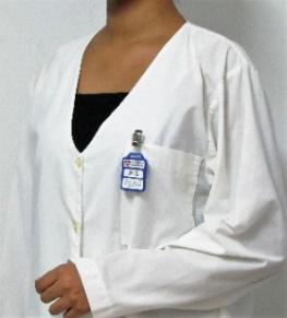 Si se usa delantal plomado el dosímetro debe ubicarse detrás del delantal plomado, de esta forma el dosímetro registrara las dosis de radiación después que la misma es atenuada por el plomo del delantal. |
